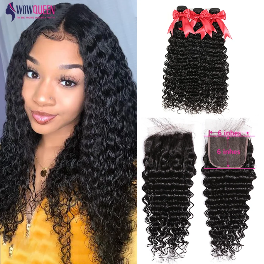 Deep Wave Bundles With Closure 6x6 Closure With 30 Inch Bundles Wowqueen Brazilian Hair Remy Human Hair 5x5 Closure With Bundles Aliexpress Mobile